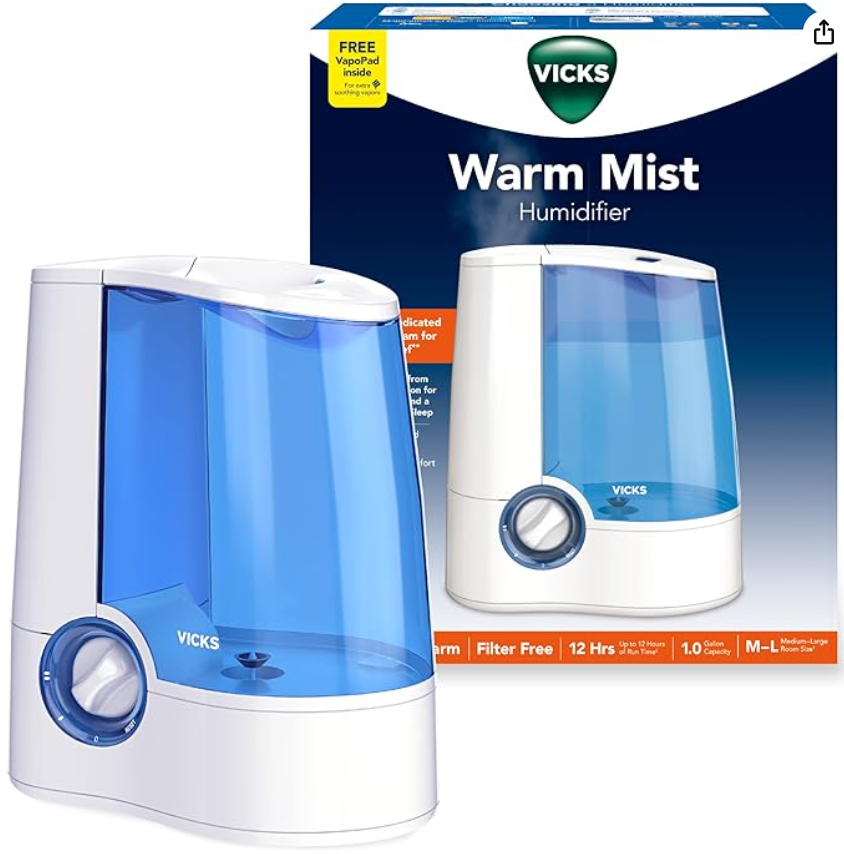 Warm-mist units typically come with medicine cups and a humidistat, that help to disperse inhalants for additional relief. The fitted humidistat will monitor the humidity within your space and adjust itself accordingly to maintain your desired levels of comfort.